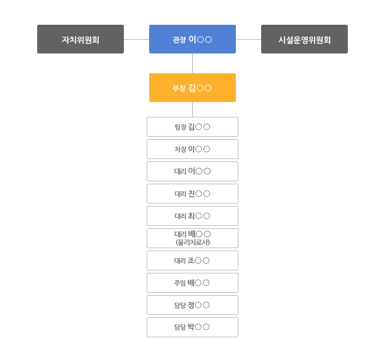 | 관장 | 이○○ | 912-9420 | • 운영 총괄 | |